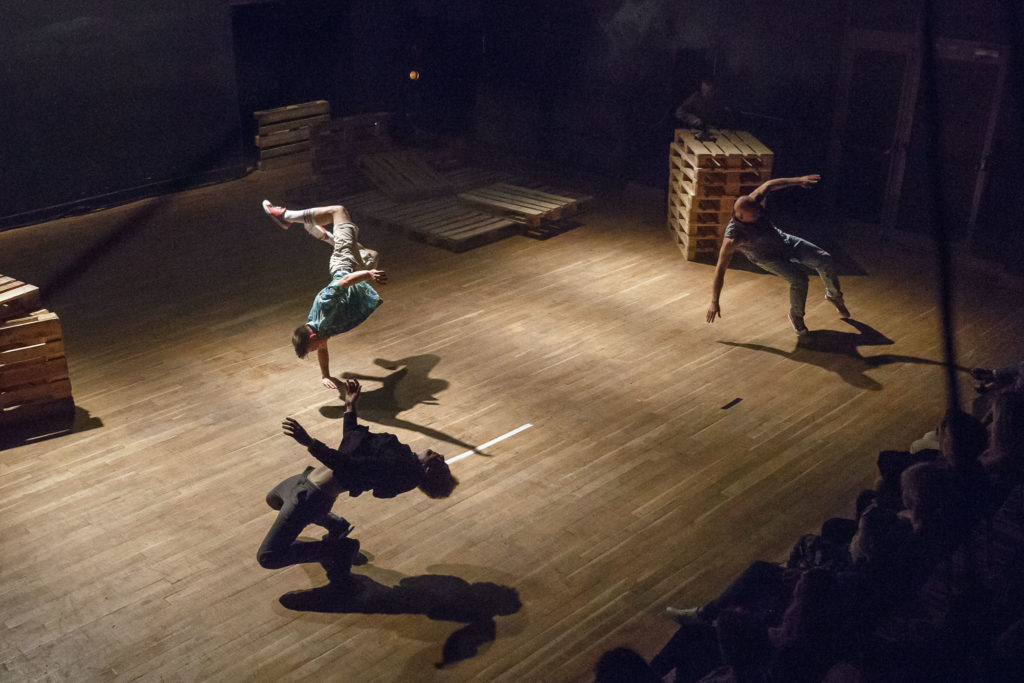 As a choreographer, I am interested in a form on the intersection of forms. I see virtuosity of the contemporaneity in the places where they start to transcend over each other. As Body Architects, we are pursuing an idea of movement that is relevant nowadays, thus, investing ourselves and integrating to our expression the newest movement arts (tricking, breakdancing, calisthenics, hip-hop dance to mention a few). This piece is a natural continuation of our big body of research into athletics, physical partnering, (bodily) architecture and rhythm (as in House Beating or Architektur und Tanz). This time I want to approach it from an angle of physical theater and stand-up/slapstick comedy. I find humor crucial to the overall accessibility of the piece. Also, I am personally motivated by diving into the World of physical humor. In the process I want us to learn from the slapstick legacy of Charlie Chaplin, Rowan Atkinson, The Umbilical Brothers and see its contemporary application. Let’s make slapstick dance again!