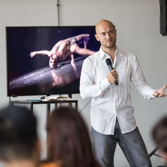 As a choreographer, I am interested in a form on the intersection of forms. I see virtuosity of the contemporaneity in the places where they start to transcend over each other. As Body Architects, we are pursuing an idea of movement that is relevant nowadays, thus, investing ourselves and integrating to our expression the newest movement arts (tricking, breakdancing, calisthenics, hip-hop dance to mention a few). This piece is a natural continuation of our big body of research into athletics, physical partnering, (bodily) architecture and rhythm (as in House Beating or Architektur und Tanz). This time I want to approach it from an angle of physical theater and stand-up/slapstick comedy. I find humor crucial to the overall accessibility of the piece. Also, I am personally motivated by diving into the World of physical humor. In the process I want us to learn from the slapstick legacy of Charlie Chaplin, Rowan Atkinson, The Umbilical Brothers and see its contemporary application. Let’s make slapstick dance again!